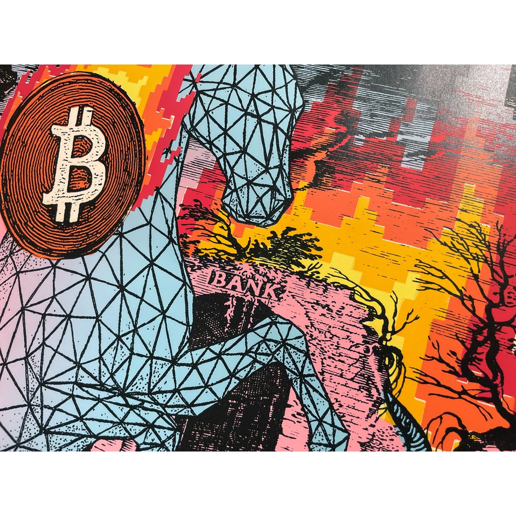 Hand-pulled in a limited edition, this screenprint continues the Cypherpunk Now series – a visual mythology of the digital age.